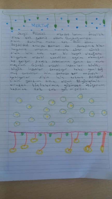 7 Ekim günü okulumuz öğretmen ve öğrencileri tarafından FİLİSTİN de yapılana İsrail zulmüne dikkat çekmek amacıyla çeşitli etkinlikler gerçekleştirilmiştir. Etkinliklere katılım sağlayan tüm öğretmen ve öğrencilerimize teşekkür ediyoruz.